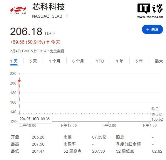 本次交易对价约为 75 亿美元(IT之家注:现汇率约合 520.92 亿元人民币)。受此消息影响,芯科科技股价暴涨 50% 以上。