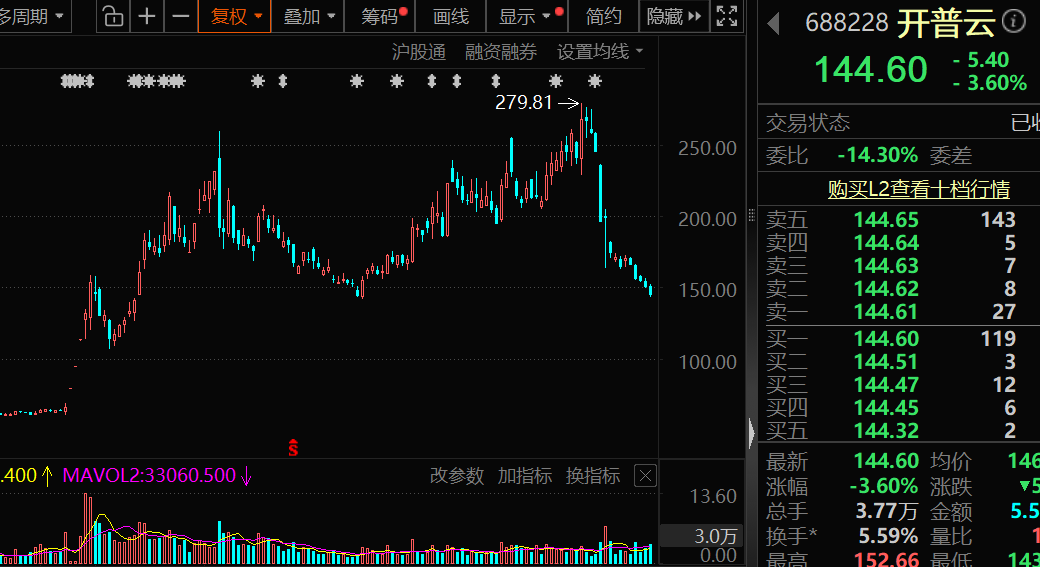 值得注意的是,公司1月30日晚间发布了2025年年度业绩预告,预计归母净利润为亏损800万元至1200万元,同比转盈为亏。业绩预告发布后,开普云股价连续下跌,累计下跌40.93%。