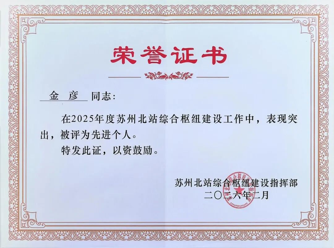 会议还宣读了2025年度建设项目优胜单位及先进个人名单。启迪设计(300500)集团总裁助理、轨道交通设计研究院院长金彦荣获指挥部颁发的“先进个人”荣誉。