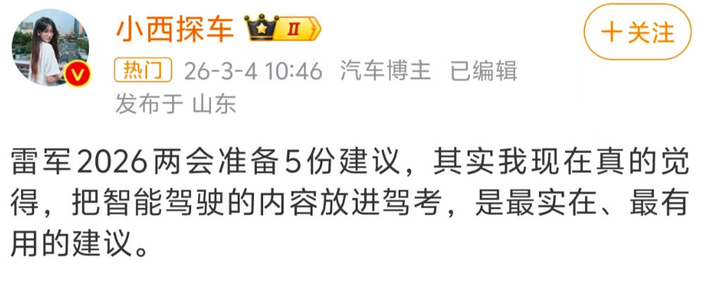 3月4日,全国人大代表、小米集团创始人雷军在个人社交账号介绍了他两会带来的5份建议,受到网友关注。