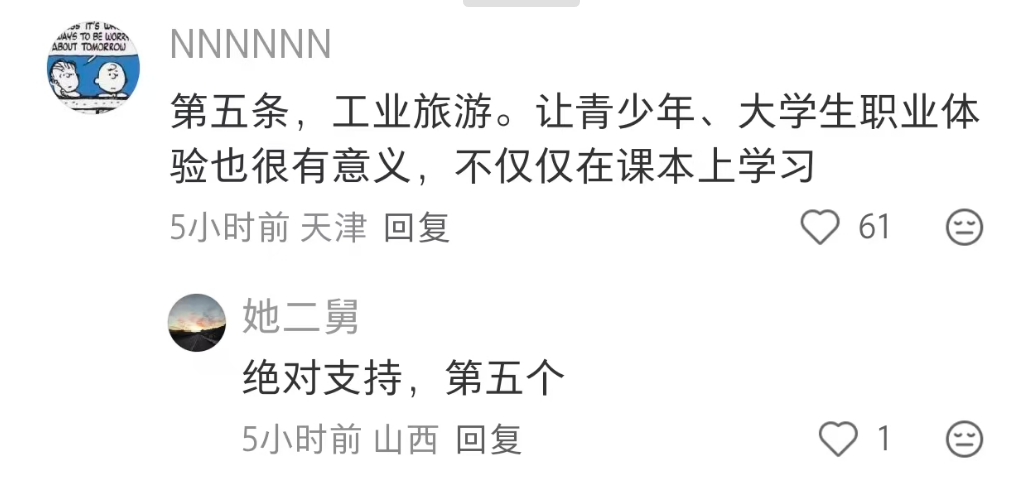 在这些建议中,关于机器人、智能汽车安全驾驶和工业旅游的建议尤为受到网友关注。