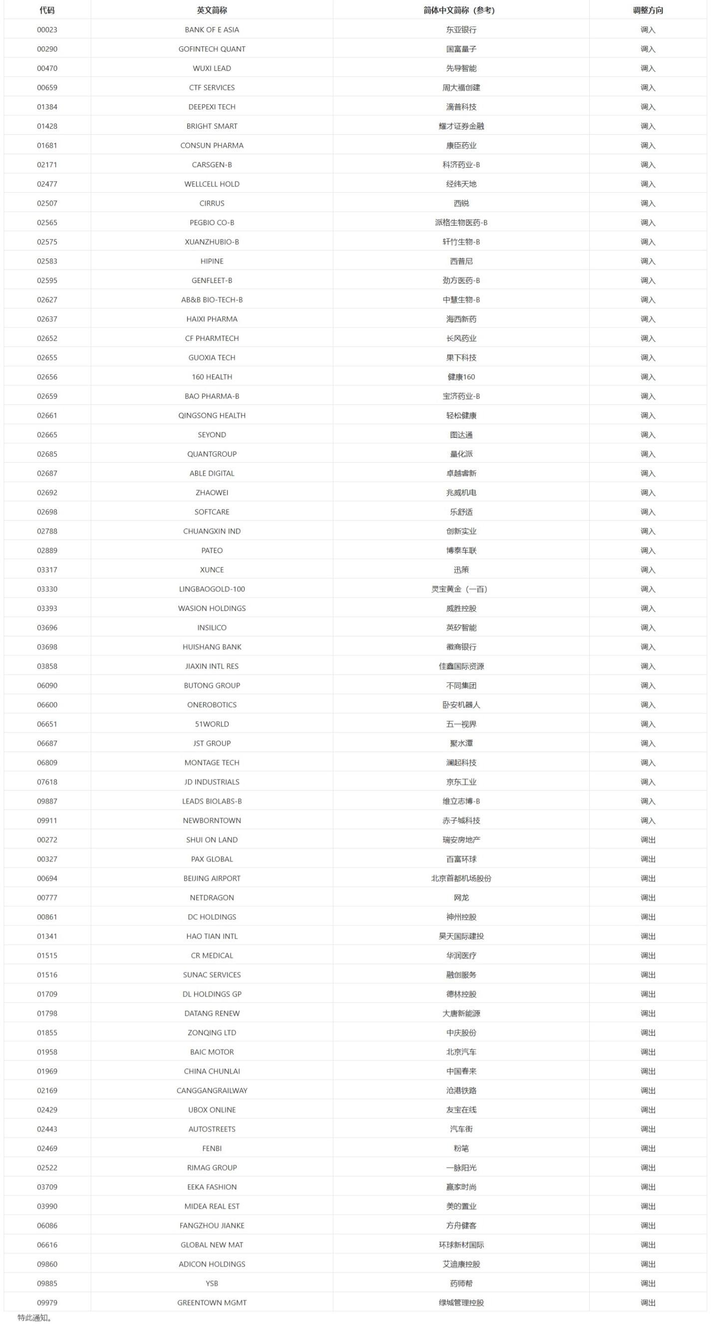 3月6日,上海证券交易所发布《关于沪港通下港股通标的调整的通知》。根据《上海证券交易所沪港通业务实施办法》的有关规定,沪港通下港股通(以下简称港股通)标的名单发生调整。因恒生综合大型股指数、中型股指数、小型股指数实施成份股调整,港股通标的名单发生调整,调入东亚银行(00023)、国富量子(00290)、先导智能(300450)(00470)等,调出瑞安房地产(00272)、百富环球(00327)、北京首都机场股份(00694)等。