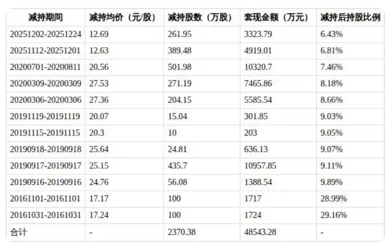 据新浪财经,孟庆南从2016年10月31日起,第一次减持武汉凡谷(002194)股份,迄今为止,累计减持公司股票2370.38万股,累计套现约4.85亿元。