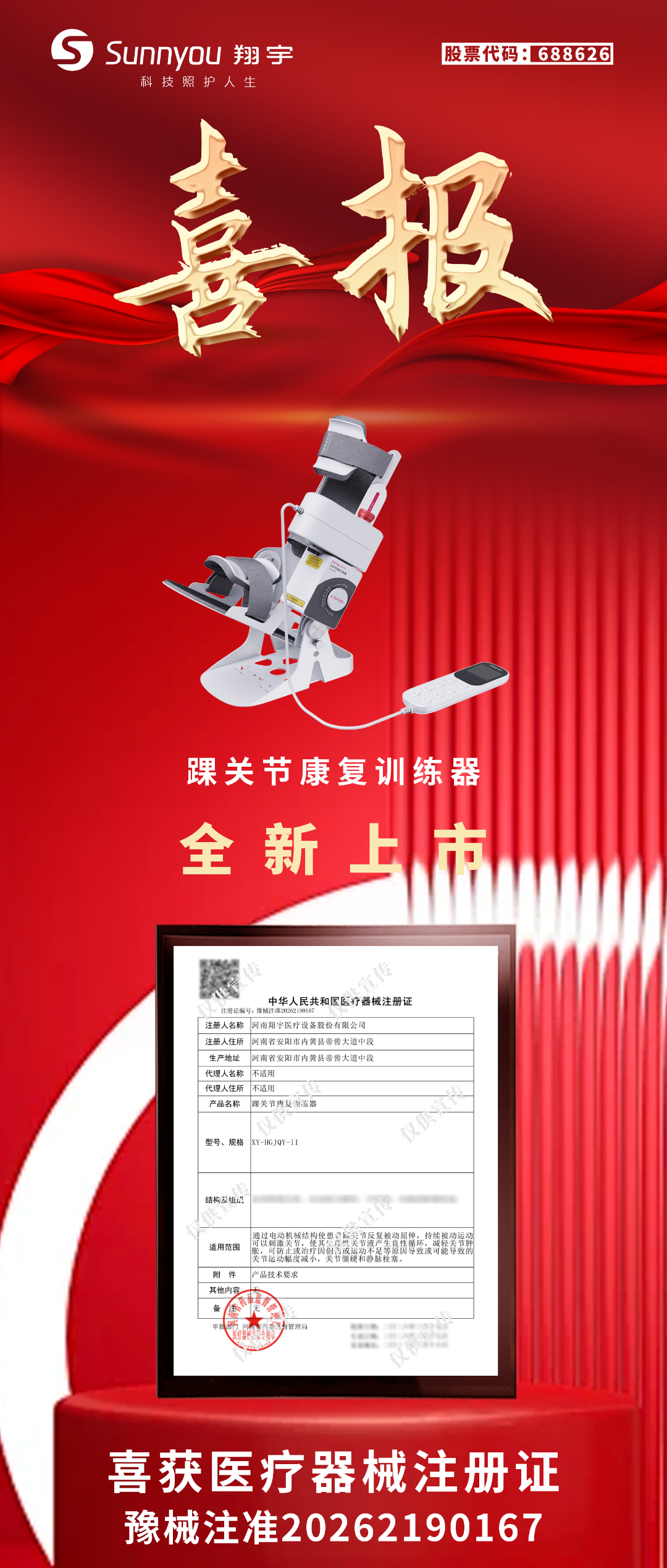 重磅!翔宇医疗踝关节康复训练器获国家医疗器械注册证!