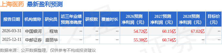 1、中邮证券有限责任公司盛丽华、龙永茂对上海医药进行研究并发布研究报告,给予买入评级。 2、上海医药发布2025年报,营收稳健增长,现金流保持高质量发展。商业板块创新业务高速增长,工业板块中药业务注入新动能。新药管线梯次化布局不断优化,数字化转型赋能全产业链。 3、预计公司2026-2028年营收分别为2980.87/3136.25/3300.09亿元,归母净利润分别为55.53/60.05/66.05亿元,当前股价对应PE分别为11/10/9倍,维持“买入”评级。