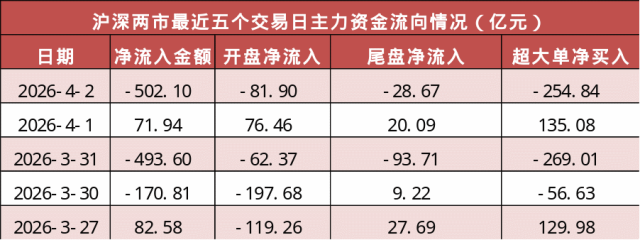 今日沪深两市主力资金开盘净流出81.9亿元,尾盘净流出28.67亿元,两市全天主力资金净流出502.1亿元。
