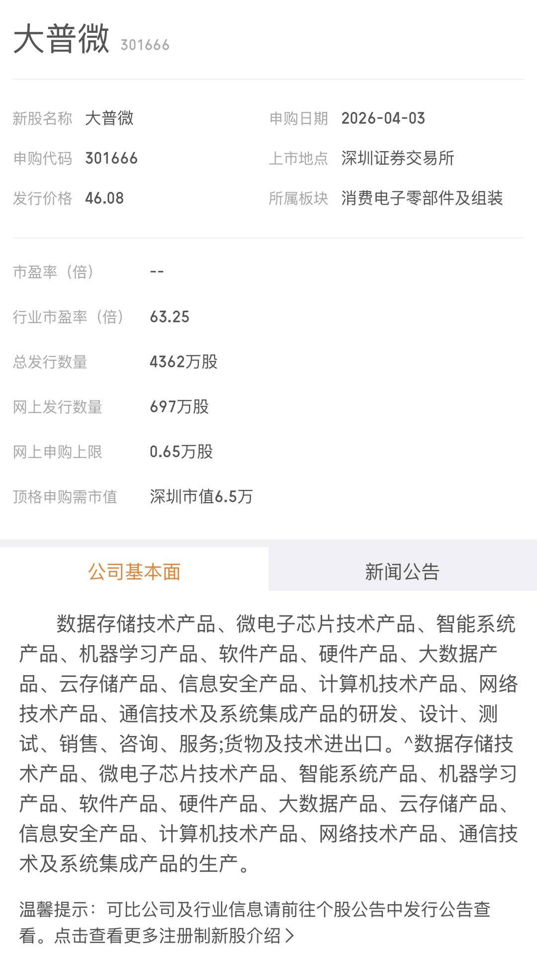 今天有一只新股申购。