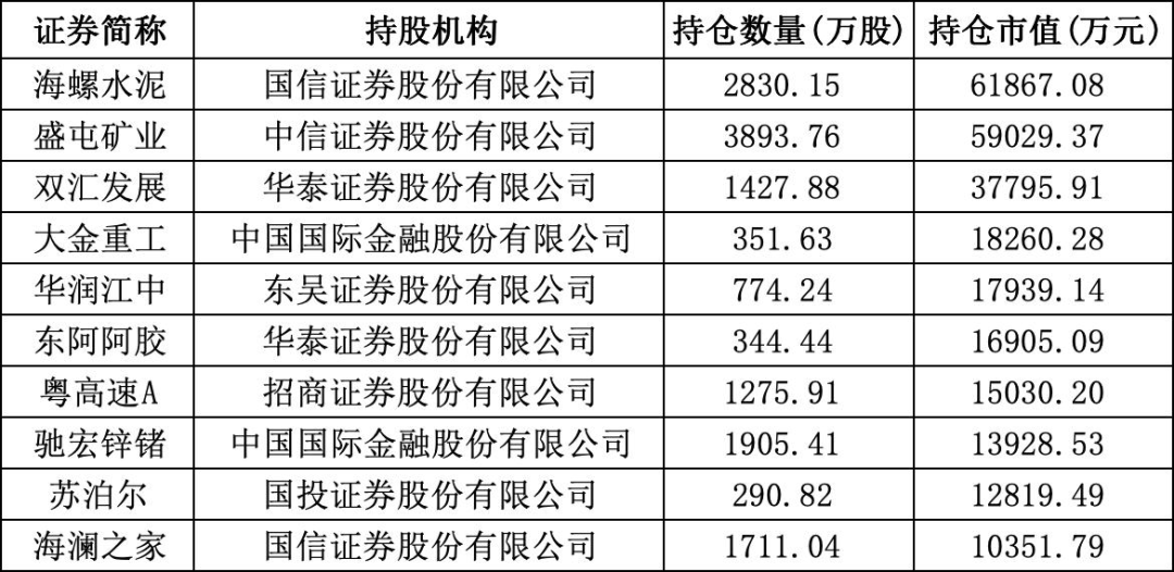 券商新进重仓股中持仓市值TOP10(截至4月9日)