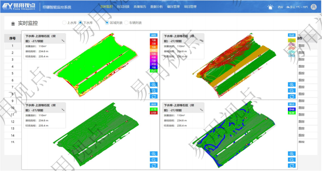 立足电力建设大坝施工痛点,依托前沿技术研发,易用视点坝碾智能监控系统、大坝碾压采集终端,为大坝填筑碾压施工提供全流程、智能化、高精度的管控解决方案,破解传统施工质量管控难题,赋能智慧工地建设提质增效。