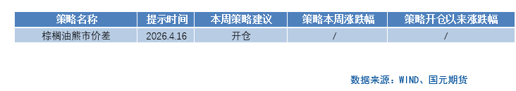 本周农业板块涨跌不一,软商品较为强势。棕榈油方面,棕榈油近期整体偏弱,核心在于供需面压力加大:一方面,马来西亚MPOB公布的3月库存高于市场预期,显示供应端压力仍在;另一方面,船运调查数据显示4月上旬马来西亚棕榈油出口环比明显下滑,出口走弱进一步加剧了高库存压力。在此背景下,马盘棕榈油自上周五以来走势偏弱,国内棕榈油也跟随回落。往后看,虽然中东局势反复、原油仍有扰动,但棕榈油自身基本面暂时缺乏明显利多支撑,短期大概率维持震荡偏弱格局,投资者可考虑开仓棕榈油熊市价差策略。