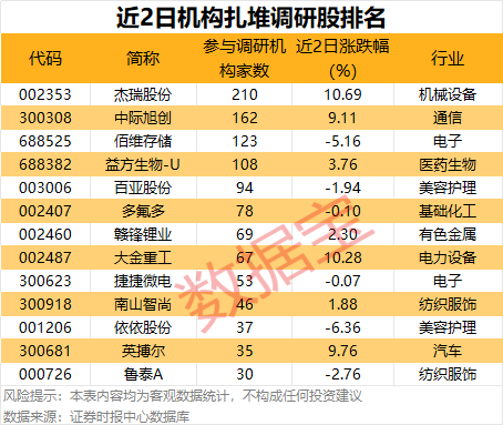 近两个交易日(4月16日至4月17日)共有43家公司公告机构调研记录,杰瑞股份(002353)、中际旭创(300308)、佰维存储(688525)、益方生物(688382)-U等4家公司均有超百家机构扎堆调研。