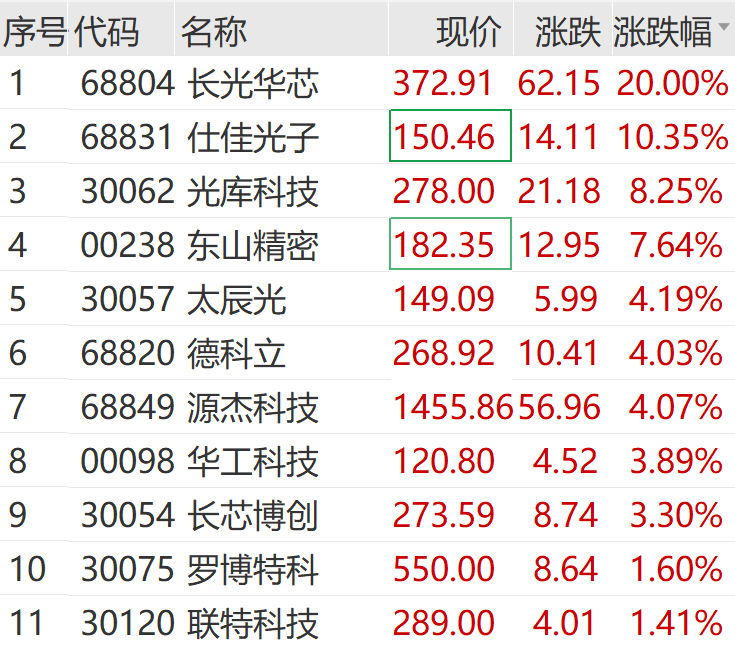 仕佳光子(688313)、东山精密(002384)、光库科技(300620)等多股大涨。