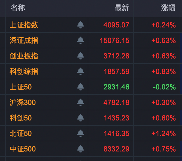 今日早盘,A股小幅震荡上扬,创业板指(399006)突破3700点,再创近11年新高,深证成指(399001)也站稳15000点,再创4年半新高,上证指数(1A0001)、科创综指(1B0680)、北证50等飘红,成交保持平稳。