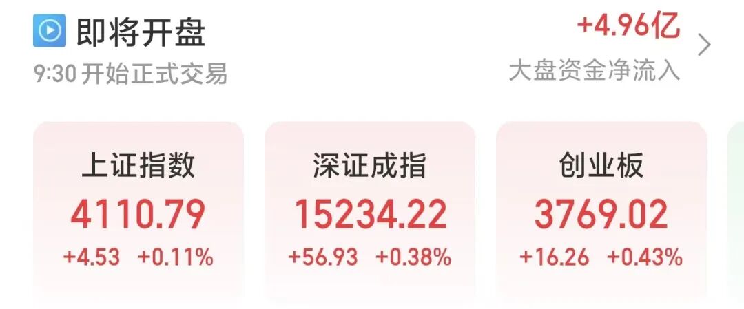 4月23日,A股开盘,上证指数(1A0001)(1A0001)涨0.11%,深证成指(399001)(399001)涨0.38%,创业板指(399006)(399006)涨0.43%。