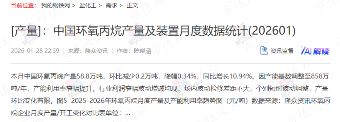 环氧丙烷(885903)和聚醚作为氯碱(884023)工艺的副产品,烧碱产能竞争力基本上决定了产品竞争力。数据显示,国内环氧丙烷(885903)最新产能为858万吨/年,头部企业是万华化学(600309)、滨化股份(601678)、红宝丽(002165)和怡达股份(300721)这些玩家。
