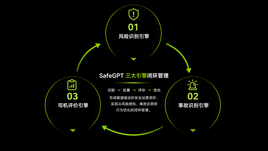 “上了SafeGPT之后”,安全管理是主动的——系统精准识别风险、科学评价司机、精准培训改善。