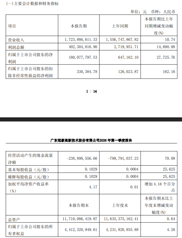4月23日,吉比特(603444)公告,2026年第一季度营收为18.47亿元,同比增长62.67%;净利润为5.18亿元,同比增长82.68%。