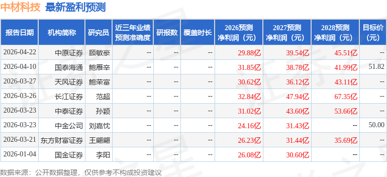 最新盈利预测明细如下: