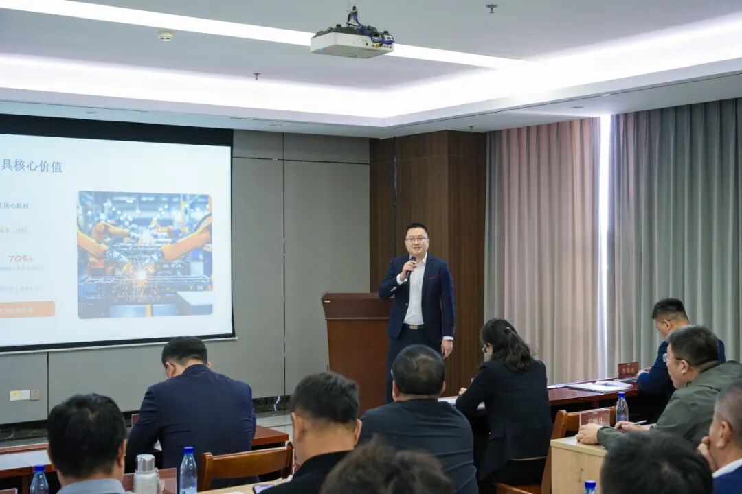 推介环节中,各业务线代表分别介绍了硬质合金刀具、工业机器人、储能的生产工艺、质量管控、核心优势与落地成果,清晰传递公司产业优势与合作价值,直观展现艾迪精密在精密加工、智能制造与新能源领域的硬核实力。