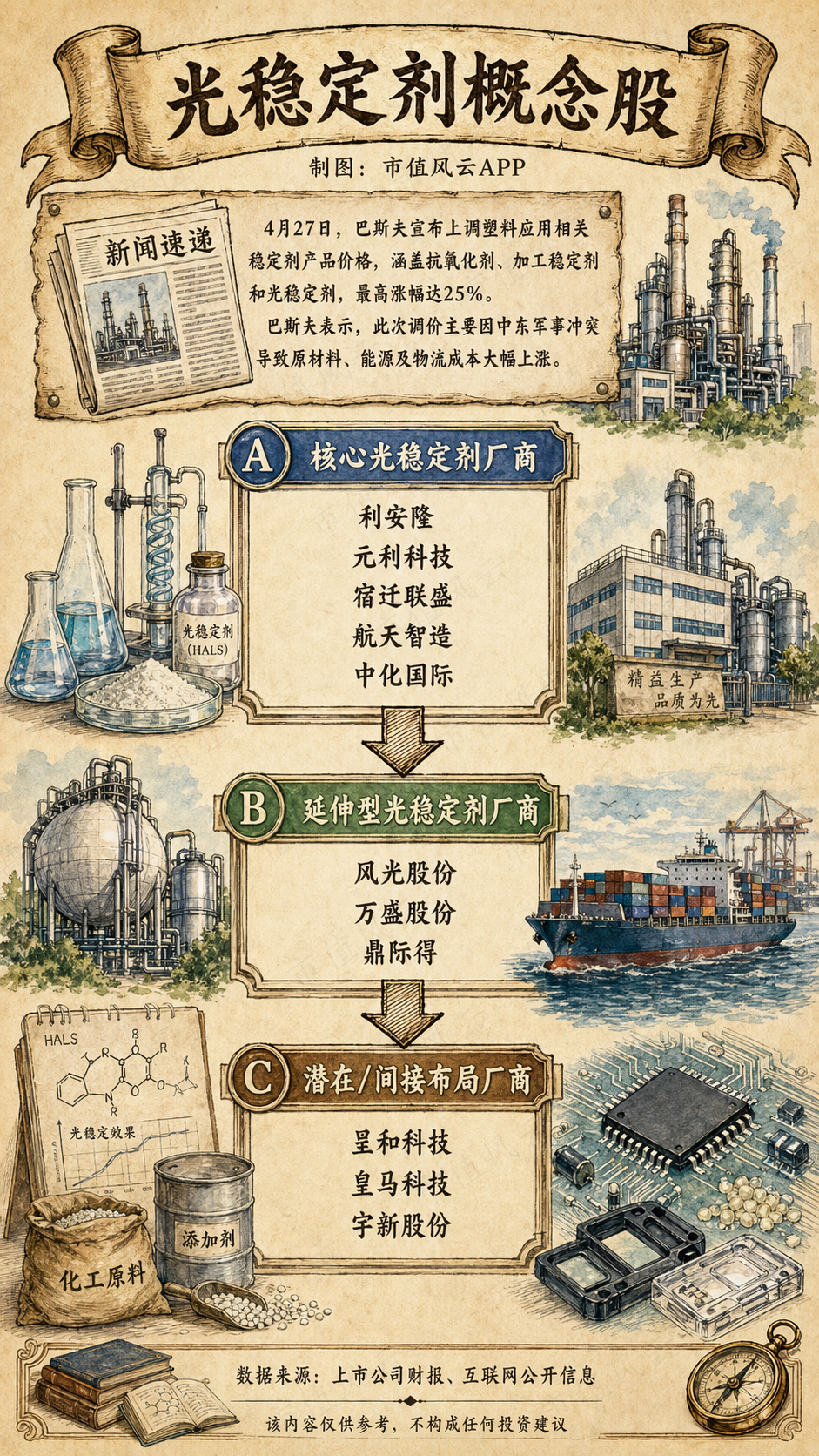 4月27日,化工(850102)巨头巴斯夫宣布将其全球组合中用于塑料应用的抗氧化剂、加工稳定剂和光稳定剂产品价格进一步上调,最高涨幅达25%。巴斯夫表示,此次价格调整是由于中东军事冲突导致原材料价格、能源(850101)和物流成本大幅上涨。