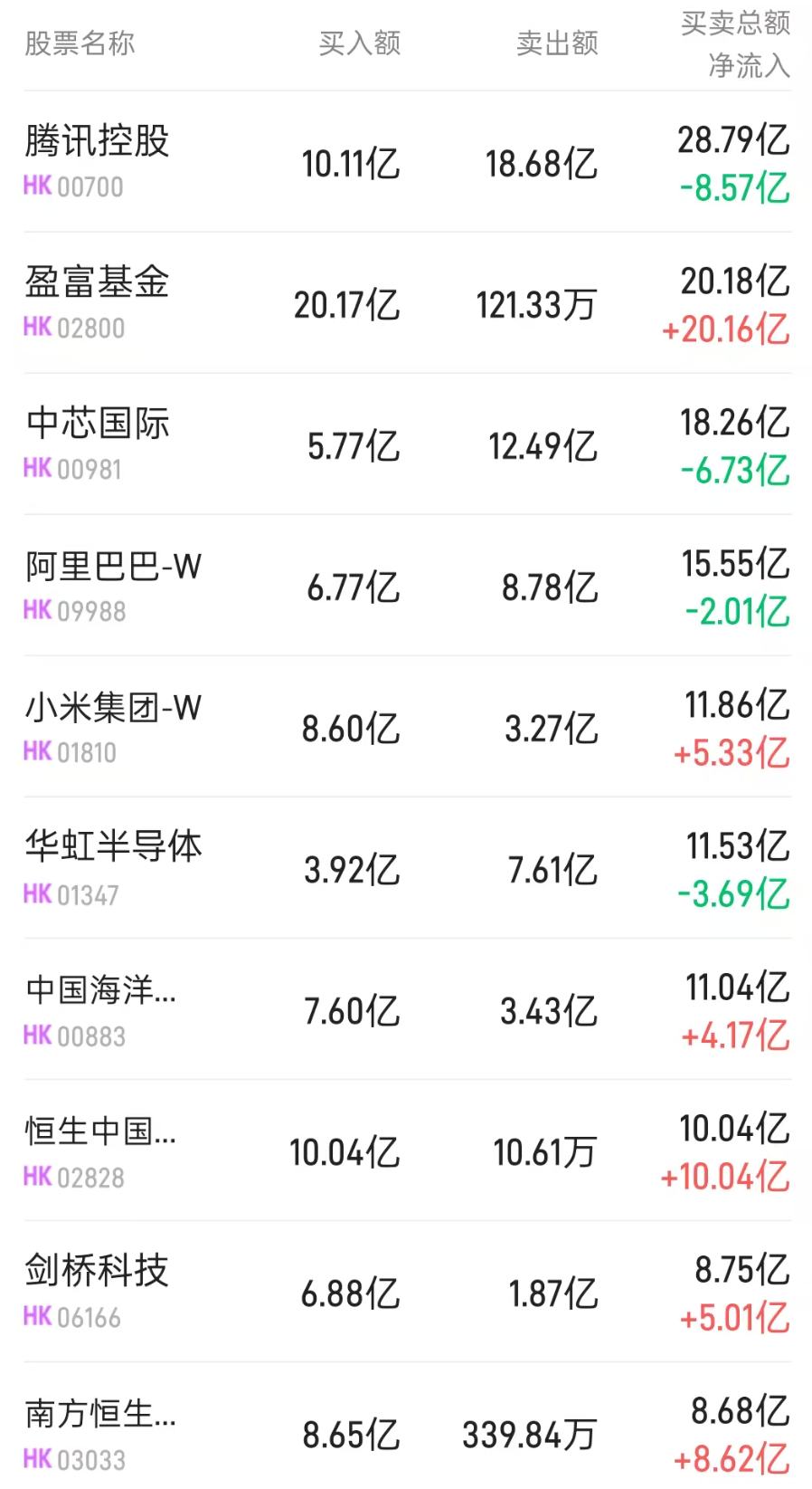 盈富基金(02800)遭净卖出14.32亿港元。消息面上,东吴证券(601555)指出,当前美股位置几乎没有反映地缘冲突对基本面的影响,如果短期美伊问题超预期,还会扰动市场节奏,影响全球资金风偏,以及海外资金配置港股节奏。