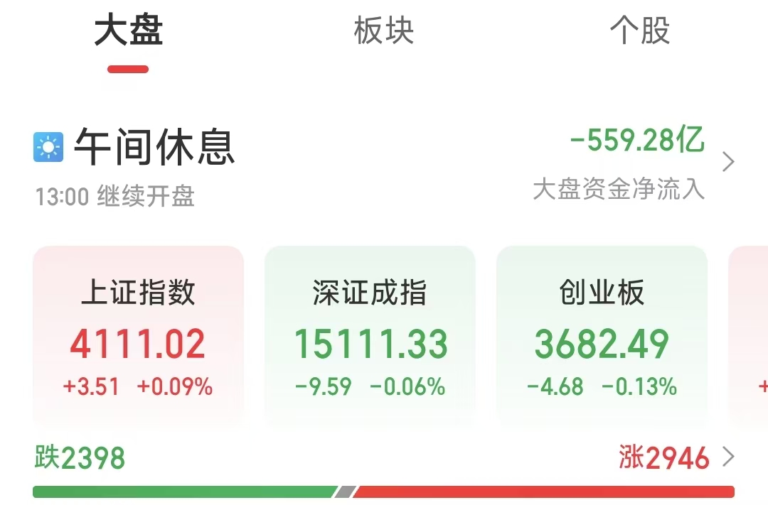 周四(4月30日)早盘,A股市场呈现窄幅震荡,多空平衡态势。截至上午收盘,上证指数(1A0001)上涨0.09%,报4111.02点;深证成指(399001)下跌0.06%,报15111.33点;创业板指(399006)下跌0.13%,报3682.49点。不过,科创50(1B0688)指数表现亮眼,大涨4.71%,报1563.86点。市场交投热情高涨,个股呈现涨多跌少格局,共有2946只个股实现上涨。沪深两市合计成交额1.81万亿元,较上一交易日同期明显放大,整体维持在活跃区间。