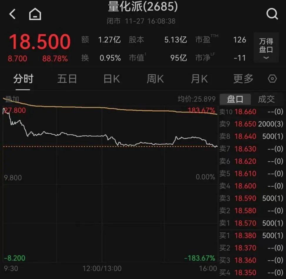 线上市场运营商量化派今日在香港联合交易所主板挂牌上市,股价收涨88.78%。