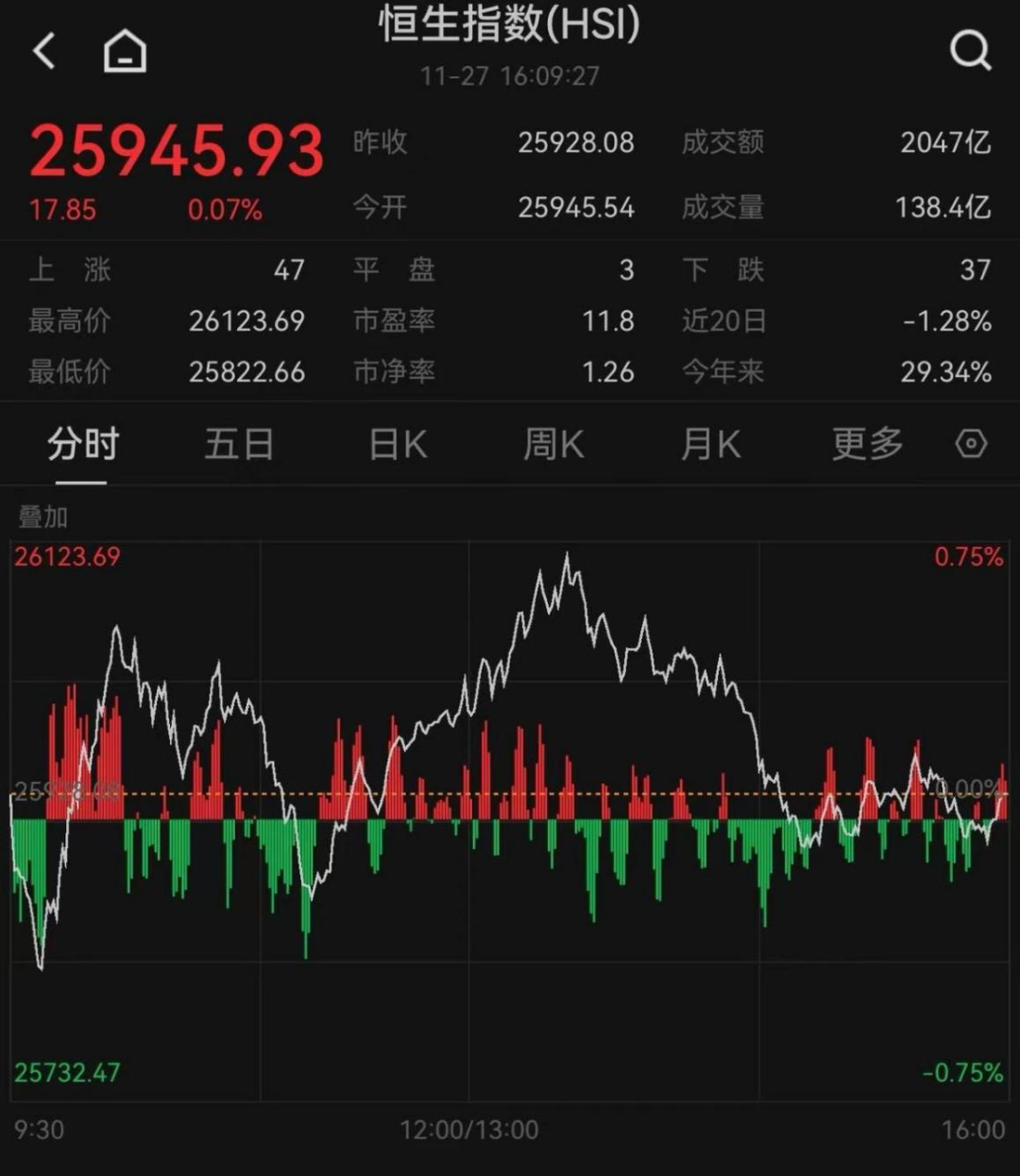 港股今日震荡走低,三大指数涨跌互现。受到政策利好提振,新消费概念股逆市大涨。