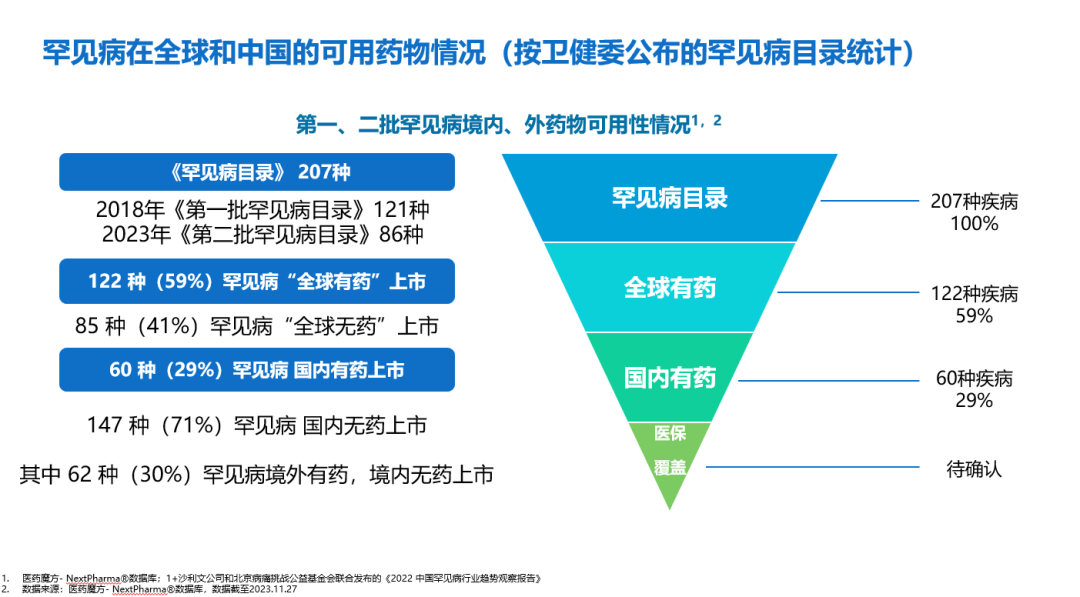 中国罕见病防治面临严峻挑战。根据文档数据,中国《罕见病目录》收录207种疾病,其中仅59%的疾病在全球有药可用,国内有药的比例更低至29%。这意味着约71%的罕见病在国内无药可治,患者面临巨大的治疗缺口。神经纤维瘤病(NF)和朗格汉斯细胞组织细胞增生症(LCH)及组织细胞肿瘤已被列入国家罕见病目录,但传统治疗手段因其疗效、安全性、可及性等原因,仍无法完全满足患者临床需求。