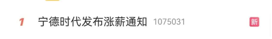 12月1日,“宁德时代(300750)发布涨薪通知”的词条迅速冲上微博热搜首位,引发大量网友关注。