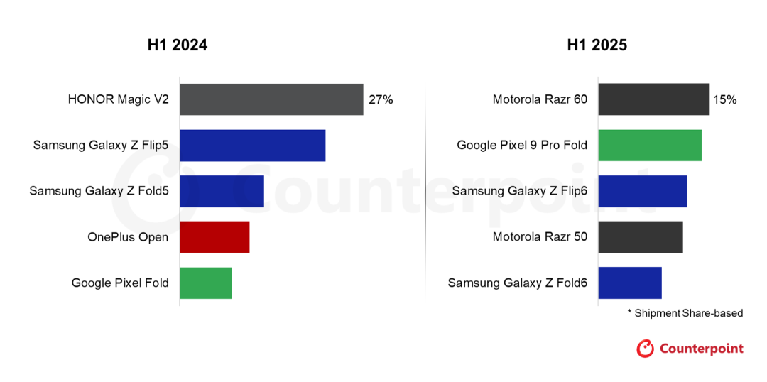 来源:Counterpoint《折叠屏智能手机追踪报告》2025年Q2