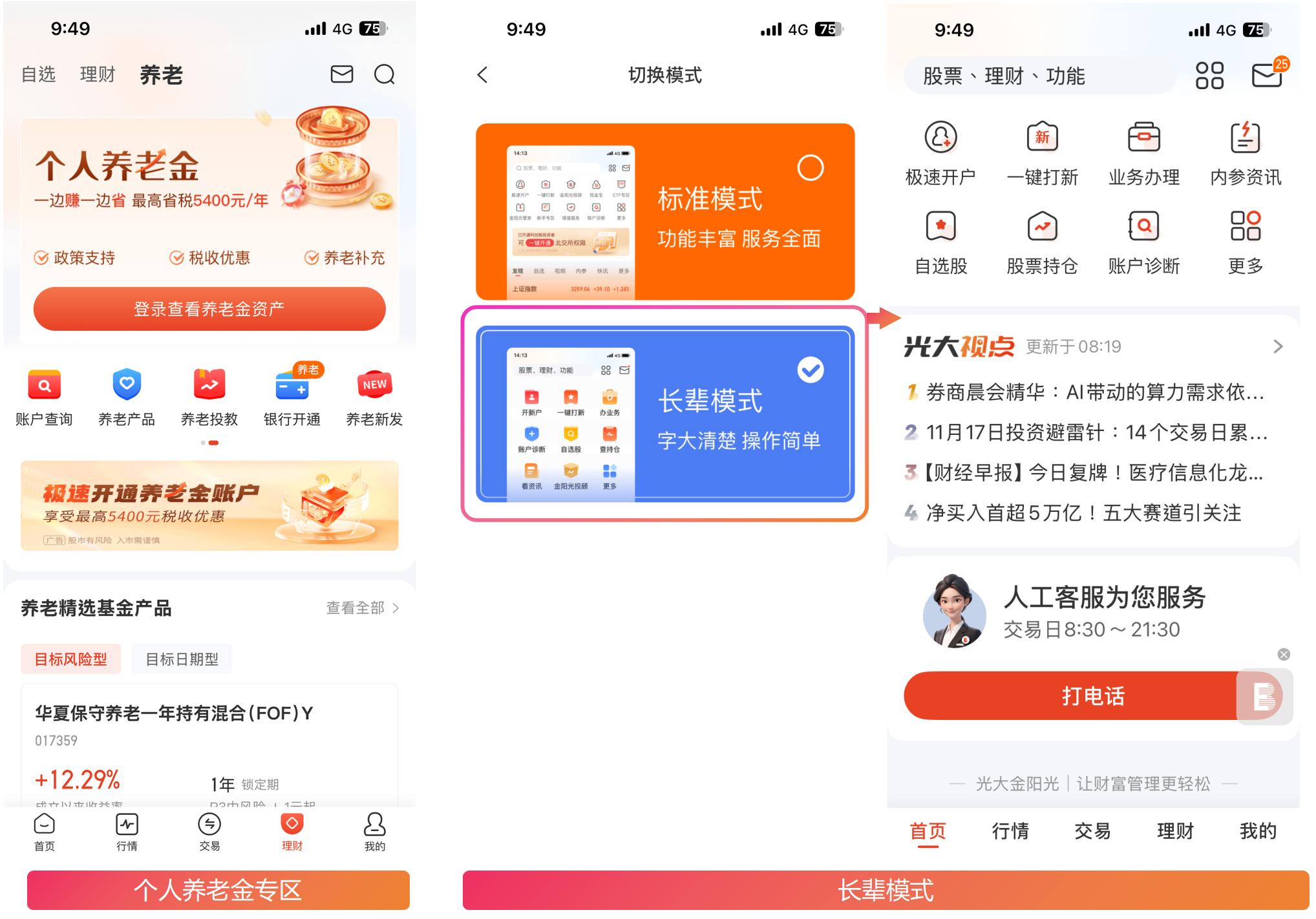科技的意义在于创造价值,而价值的终点是服务客户。光大证券深入践行金融“五篇大文章”中的“数字金融”,以“科技创新”为抓手深化践行“金融为民”,利用科技手段深度洞察客户需求,通过客户画像与行为分析,为客户提供个性化、差异化的产品与服务方案,提高金融服务科技创新的普惠性和精准度。公司持续优化金阳光移动金融服务平台,上线个人养老金专区,实现账户开通、投资理财等一站式服务;优化长辈模式,更好地服务不同年龄层的客户。围绕客户交易需求,细化场景分类,构建多元化智能交易体系、工具矩阵,上线基于交易双向的十多种智能条件单策略,打造“智能T0算法、极速交易、金算法”三款智能交易算法工具,配套陪伴式投顾服务专区,给客户提供了“好下单,下好单”的极致交易体验,帮助客户收获实实在在的收益,使用策略的累计用户较2023年增长4倍,切实让科技红利转化为客户收益。