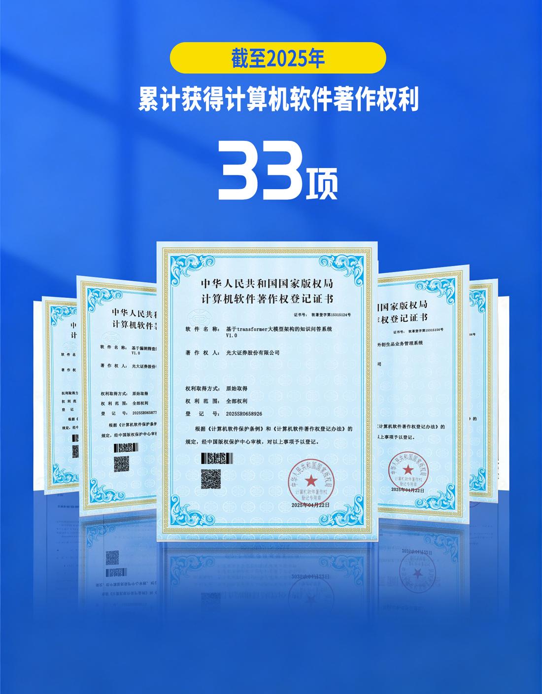 创新始于科技,兴于产业,成于资本。光大证券积极践行“五要五不”中的“守正创新,不脱虚向实”的文化准则,营造鼓励探索的创新文化氛围,激发全员创新活力。2025年公司举办“数字赋能·创见未来”数字化转型技能竞赛,多支跨部门团队围绕“数据建模”和“场景应用创新”两大特色赛道展开激烈角逐,落地了一批创意设计及创新成果,全面提升公司科技创新实力与业务融合能力。与此同时,公司积极推进算力基础设施的自主可控建设,推进人工智能技术在各业务领域的深度融合,其中数字员工“光小e”作为公司AI赋能的重要应用,涵盖大模型基础服务、RAG(检索增强生成)、知识库、流程编排、数据标注以及外部工具集成等多元化技术能力,加速人工智能、大数据、云计算、虚拟数字人等技术与文化内容相结合,为员工提供场景化的智能服务与解决方案,截至目前,光大证券累计获得科技方面专利1项、软件著作权33项;近3年先后参与行业核心机构组织的课题研究8项,彰显了公司在关键技术自主掌控及知识产权保护方面的持续进步。