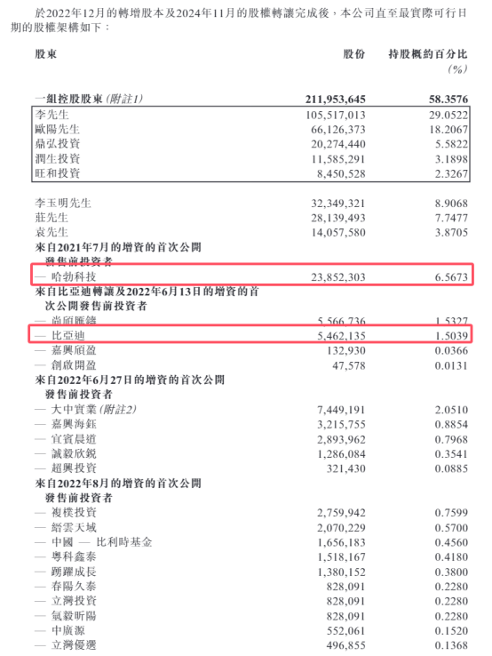 其中,在上市前,哈勃科技持有约6.57%的股份,比亚迪持有约1.50%的股份。