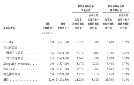 不过,遇见小面仍然吸引一批知名机构和产业公司成为其基石投资者。包括高瓴旗下HHLRA、君宜香港基金、Shengying Investmen以及海底捞新加坡等。