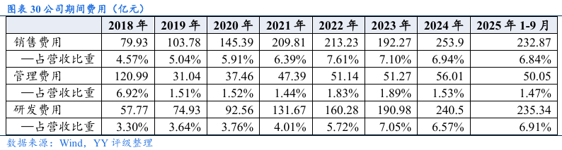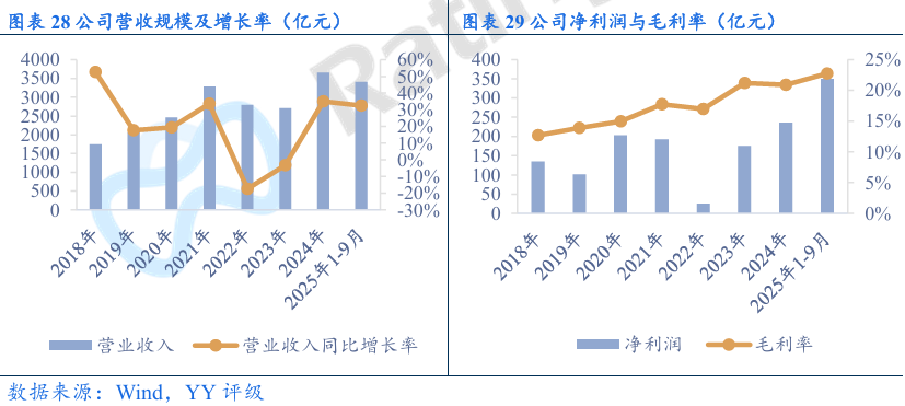 财务方面,随着公司高端化进程推进以及汽车业务放量,近两年公司营收规模快速增长,毛利率成上升趋势,整体盈利能力有所提升。公司研发费用绝对金额大幅增长,但占营收比重维持在合理水平,销售费用率有所优化。资产端,公司资产规模随业务规模扩张而增长,资产流动性较好,现金流资产较为充裕。负债端,公司有息债务规模持续增长,资产负债率维持在50%左右,由于公司现金储备充裕,盈利能力增强,公司整体偿债压力不大。