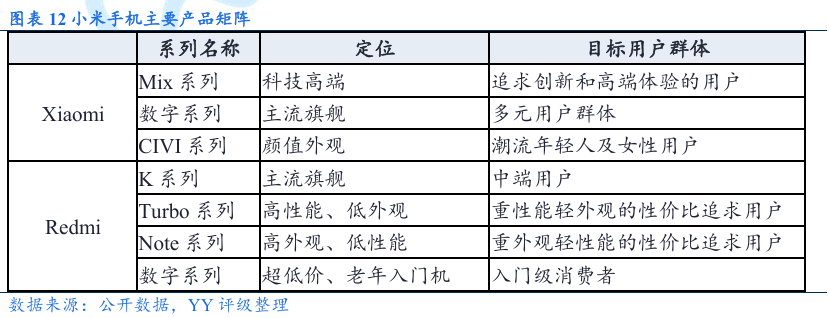 智能汽车:2021年小米进军智能电动汽车领域,2024年小米SU7一经发售即成爆款,小米汽车的开门红主要依靠高配置高性价比、领先的技术、高颜值、人性化设计以及小米自身的品牌影响力等因素。然而小米也面临着供应链缺乏弹性、市场竞争加剧以及2026年购置税减半导致需求下滑等风险。同时流量作为双刃剑也将小米汽车的一些隐忧放大并推到舆论风口之上,例如对自动驾驶安全性的担忧,没有配备机械门把手的争论,因此小米汽车的具体的驾乘体验感是否如宣传一般和技术是否过硬仍有待时间考证。