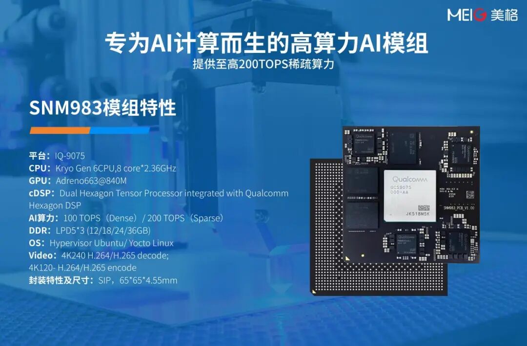 物理AI概念的提出,为万物智能的未来提供了底层支撑。美格智能不仅拥有丰富的高算力AI模组矩阵,更为未来1至3年的AI技术迭代开发设计了专为AI计算而生的SNM983模组。