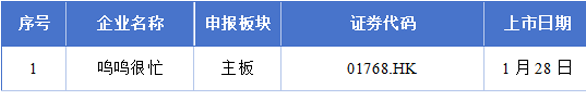 1月18日至1月24日期间,鸣鸣很忙启动招股程序。