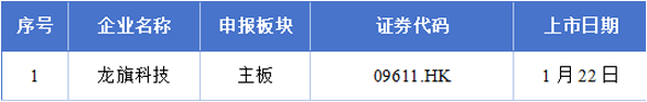1月18日至1月24日期间,龙旗科技(603341)挂牌上市。