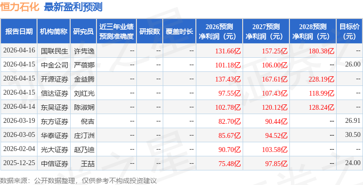 1、中邮证券有限责任公司刘海荣、刘隆基对恒力石化进行研究并发布研究报告,首次给予买入评级。 2、恒力石化2025年年度报告发布,营业收入2009.86亿元,同比下降14.93%,净利润70.75亿元,同比下降0.44%。核心产品炼化产品产销稳健,PTA产量同比增长1.92%,聚酯产品等销量均同比提升。 3、公司注重股东回报,全年派现26.04亿元,占归母净利润比例36.81%。 4、风险提示包括国际油价波动、原料供应不稳定和下游需求不及预期。最新盈利预测目标均价为27.8。