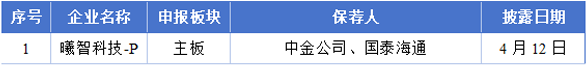 2)、4月12日,晶晨股份(688099)第2次向港交所递交招股书,拟在香港主板上市,联席保荐人为中金公司(601995)、海通国际。(A+H)