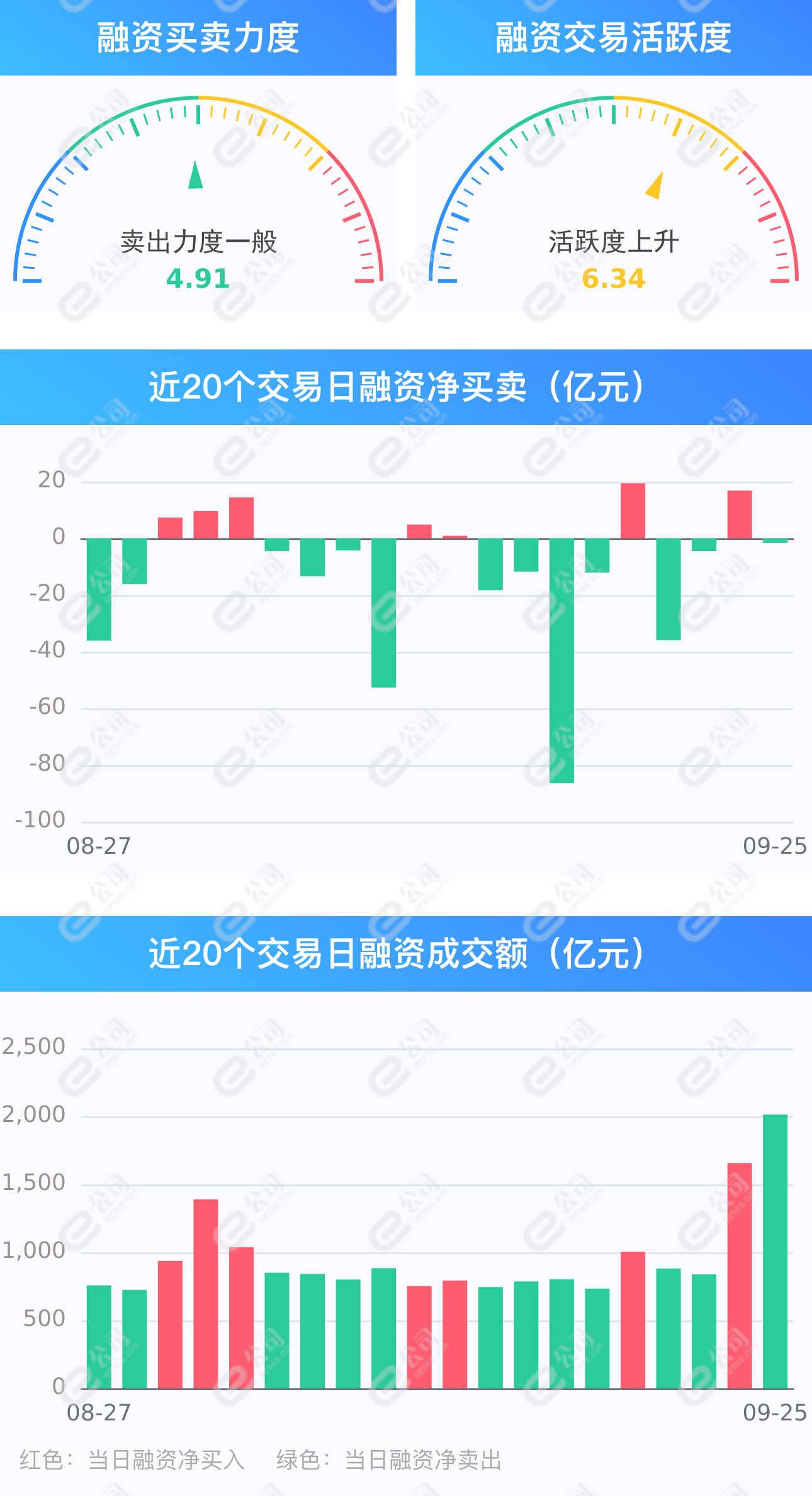 截至9月25日,上交所融资余额报7159.53亿元,较前一交易日减少13.12亿元;深交所融资余额报6456.05亿元,较前一交易日增加11.54亿元;两市合计13615.58亿元,较前一交易日减少1.58亿元,融资交易额2012.19亿元,占A股成交额17.39%,其中融资买入额1005.30亿元,融资偿还额1006.88亿元,交易活跃度上升21.51%。