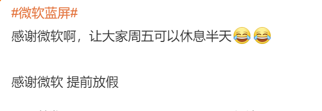 不少用户发帖称,微软系统的故障,导致提前下班。