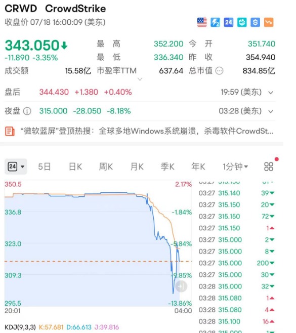 事件发生之后,CrowdStrike股价暴跌8%。