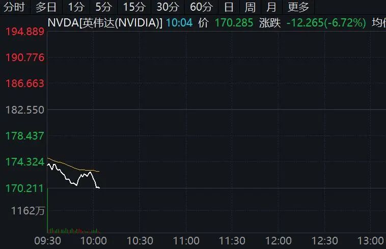 个股方面,英伟达跌幅扩大至逾6%,创9月17日以来新低,总市值跌至4.15万亿美元,较历史最高点跌去1万亿美元,10月29日,英伟达股价一度触及212美元/股的最高点,当时总市值高达5.15万亿美元。