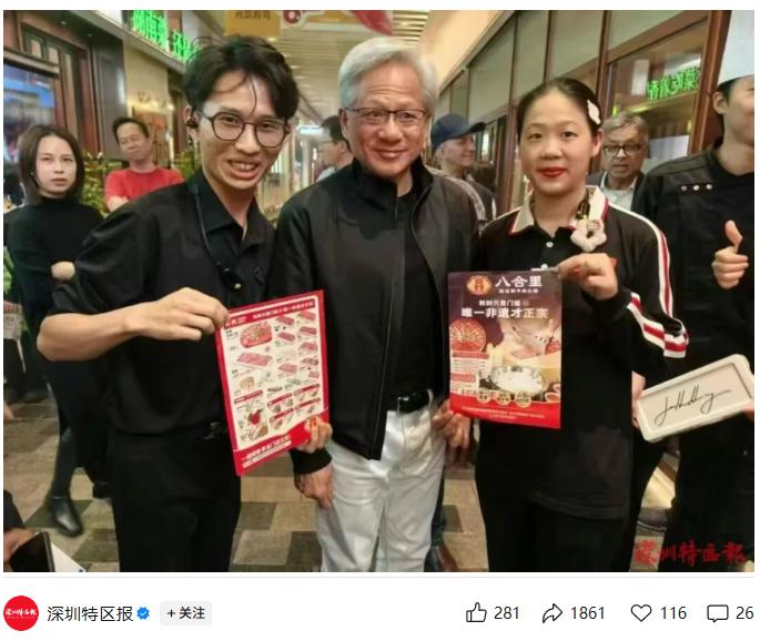 皮衣返场:英伟达 CEO 黄仁勋现身深圳吃火锅,大赞牛肉新鲜又好吃