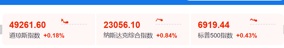 2月25日晚间,美股三大指数上涨,科技股涨幅居前,道琼斯指数微涨,纳指涨近1%,标普指数涨约0.4%。