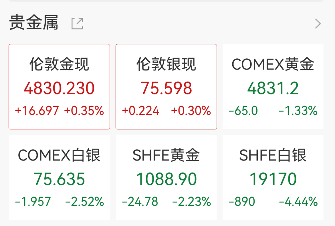 贵金属(881169)方面,黄金白银昨夜一度遭遇重挫,现货黄金创一个月新低。截至发稿,亚洲早盘现货黄金涨0.35%,现货白银涨0.3%。