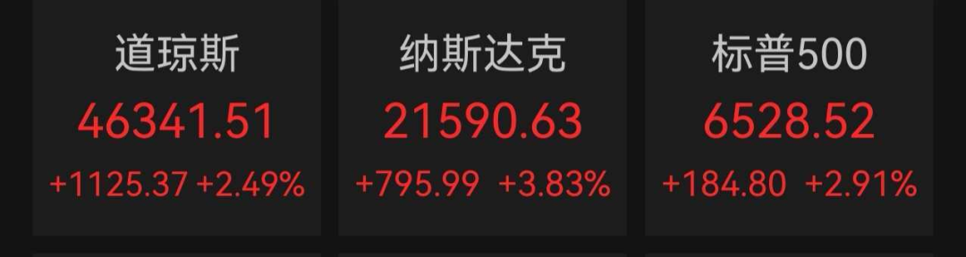 当地时间3月31日,美股三大股指全线收涨。数据显示,截至收盘,道指(DJI)涨2.49%报46341.51点,标普500(SPX)指数涨2.91%报6528.52点,纳指涨3.83%报21590.63点。
